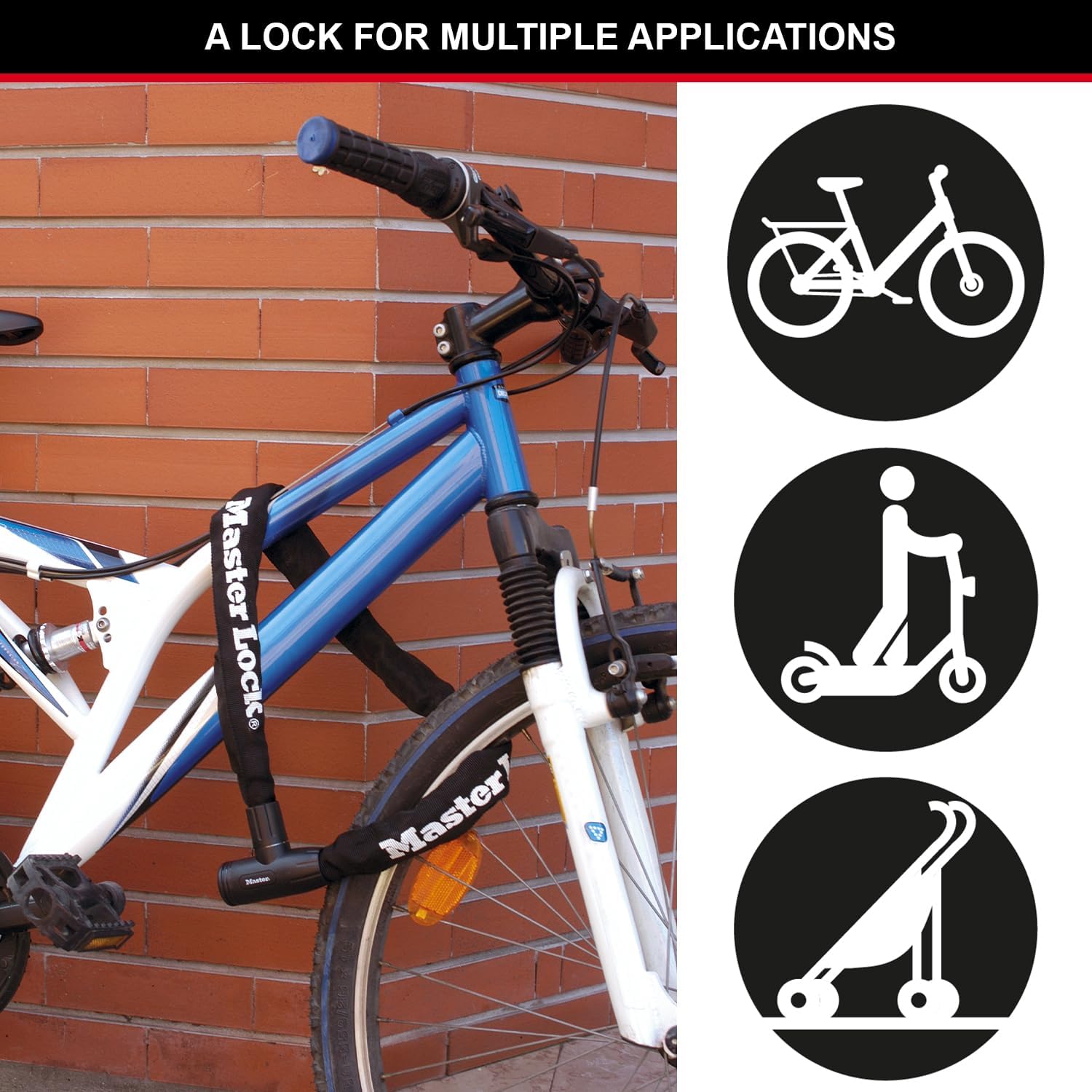 The Master Lock No. 8391EURDPRO chain with integrated keyed lock is 90 cm long and features 8 mm diameter hardened steel links, offering resistance to cutting and sawing. Universal lock for all type of bikes : road, mountain, folding, electric ; indoor and outdoor use. The nylon sleeve provides additional protection for equipment. The disc key cylinder provides anti-picking resistance. The limited lifetime warranty provides peace of mind from a brand you can trust.